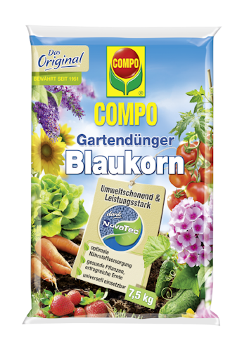 Der COMPO Blaukorn Gartendünger ist ein hochwertiger, chloridarmer und granulierter Dünger, der sich besonders vielseitig einsetzen lässt. Er eignet sich hervorragend für alle Gartenpflanzen – auch für Obst und Gemüse. Mit allen essentiellen Hauptnährstoffen und kostbaren Spurennährstoffen sorgt der Gartendünger für ein gesundes Wachstum, leckere Früchte und eine ertragreiche Ernte. Wertvolles Magnesium trägt zusätzlich entscheidend zur Blattgrünbildung bei. Mit dem COMPO Blaukorn wird außerdem das Pflanzen-Wachstum beschleunigt und die natürliche Widerstandskraft gestärkt. Ein niedriger Chloridgehalt ermöglicht es Ihnen, den Gartendünger auch für Ihre empfindlichsten Pflanzen einzusetzen. Der COMPO Blaukorn ist besonders ergiebig.