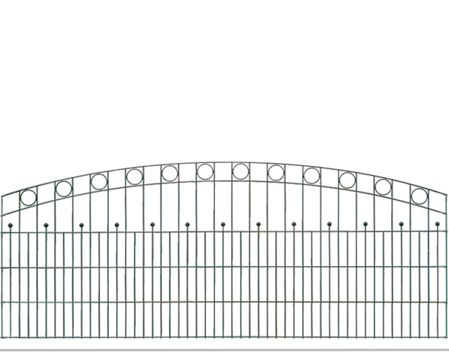 Hochwertige Schmuckzaunmatte Residenz standard WIEN von dz mit klassischen Kreisornamenten und Zierkugeln im Oberbogen der Doppelstabmatte.