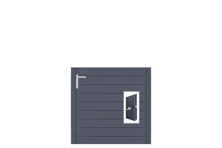 Das dz VIDUAL Swing Einzeltor Pure 100 x 20 mm Rhombusprofil - DIN Rechts - mit Durchblickrichtung von außen nach oben gerichtet - besticht durch modernes Design. Dank variabler Montage kann sowohl die Durchblickrichtung (oben/unten) als auch die Öffnungsrichtung (DIN) individuell angepasst werden.