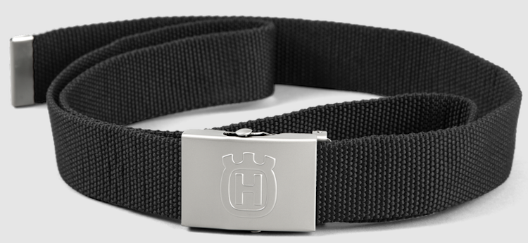 Schwarzer Husqvarna Gürtel mit Metallschnalle und eingeprägtem Husqvarna Logo
