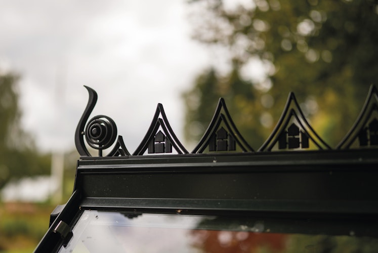 Die Dachfirstverzierung für das Halls Gewächshaus Icon 8 setzt stilvolle Akzente am Dachfirst und verleiht Ihrem Gewächshaus einen klassischen, englisch inspirierten Look. Gefertigt aus robusten und pflegeleichten Materialien, lässt sie sich mit wenigen Handgriffen montieren und wertet das ICON optisch auf, ohne die praktische Nutzung zu beeinträchtigen.