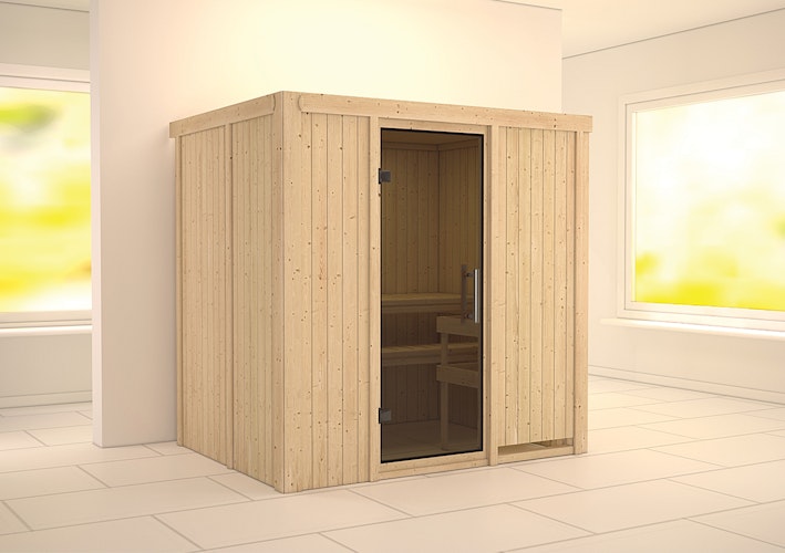 | Tür | Sie haben die Wahl zwischen 4 Türvarianten: Energiesparende Saunatür mit Glaseinsatz, bronzierte Ganzglastür, moderne graphit Ganzglastür oder Klarglas Ganzglastür. Alle Türen kommen mit Sicherheitsglas. Durchgangsmaß ca. 173 x 64 cm Weitere Infos erhalten Sie hier . |