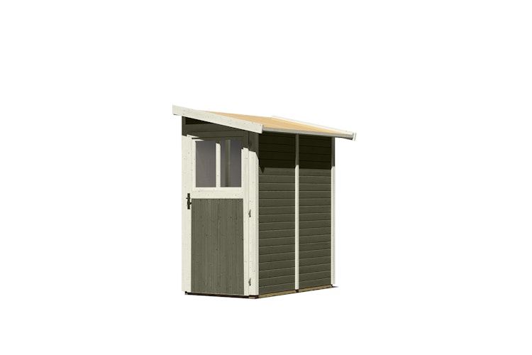 Das Karibu 19 mm Gartenhaus Görlitz mit seinem praktischen Pultdach ist einfach an eine bestehende Wand anzubauen. Das Anlehn-Gartenhaus wird mit Massivholz-Pultdach und 19 mm Rundprofilhölzern für die Seitenwände geliefert.