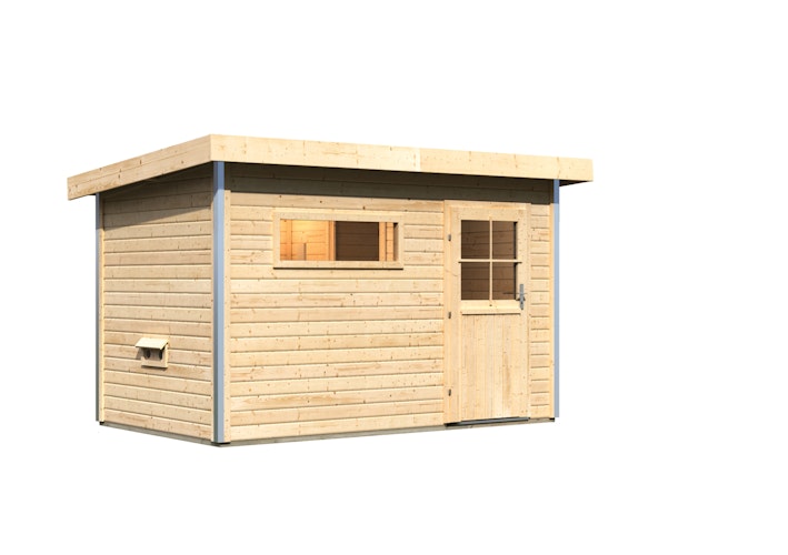 Karibu Gartensauna Pultdach Saunahaus Skrollan 1 mit Vorraum naturbelassen