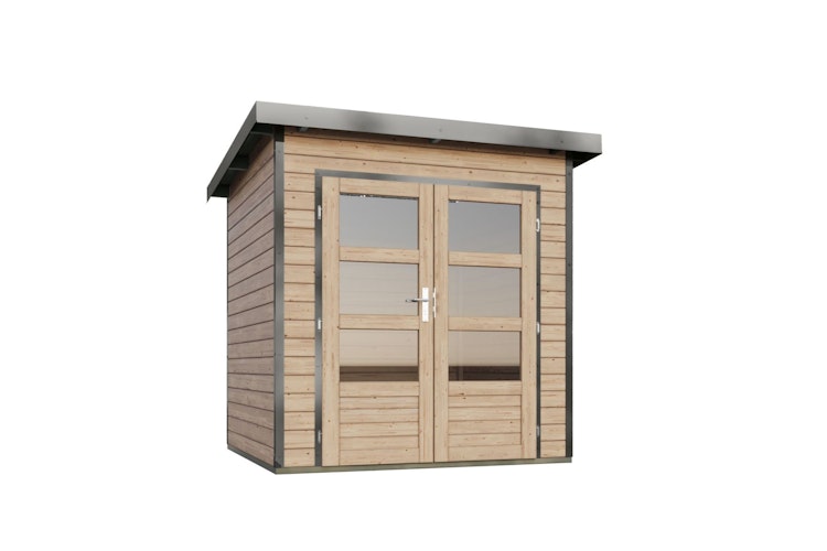 - Hochwertige Materialien: Nordische Fichte für die Wände, Stahlecken und Trapezblechdach