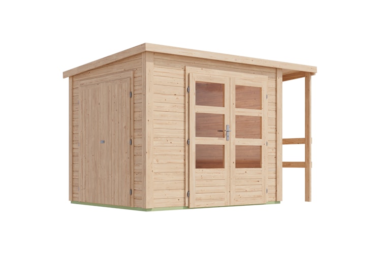 Karibu Multifunktionshaus Pultdach-Gartenhaus inkl. Schleppdach und Anbauschrank - 28 mm