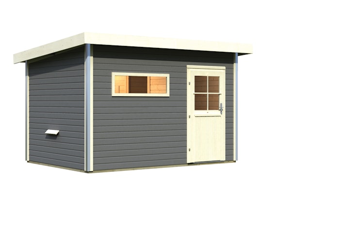 Karibu Saunahaus Skrollan 2 mit Vorraum terragrau