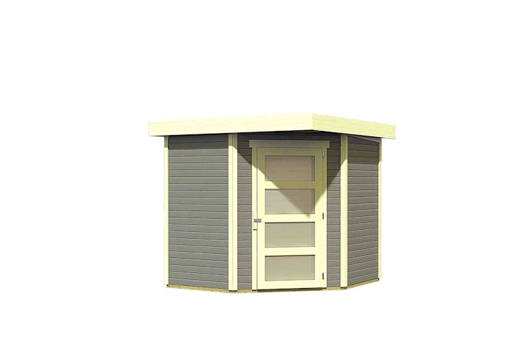 Das Karibu/Woodfeeling Gartenhaus Schwandorf eignet sich perfekt für die Platzierung in einer Grundstücksecke. Erhältlich in zwei Größen und auf Wunsch mit farblicher Vorbehandlung.