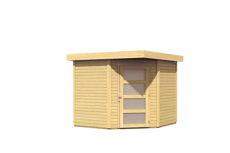 Das Karibu/Woodfeeling Gartenhaus Schwandorf eignet sich perfekt für die Platzierung in einer Grundstücksecke. Erhältlich in zwei Größen und auf Wunsch mit farblicher Vorbehandlung.