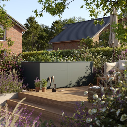 Das KGT Hochbeet UrbanGrow XL bietet mit 1,99 m x 0,99 m x 0,78 m großzügigen Raum für Ihre Pflanzen und überzeugt durch eine stabile Konstruktion aus verzinktem, pulverbeschichtetem Stahl in elegantem RAL 7016. Mit einer umlaufenden Schneckenkante zum Schutz der Ernte und einer optionalen Einlegeboden-Erweiterung kombiniert es Funktionalität und moderne Optik perfekt.