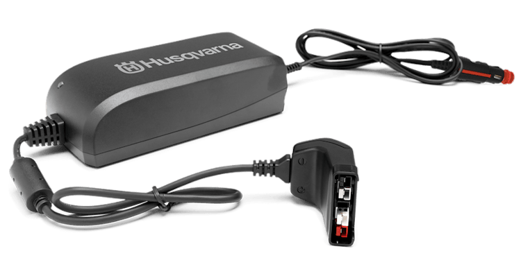 Das Husqvarna Ladegerät 12V QC80F hat eine Aufladezeit von etwa 80 Minuten.