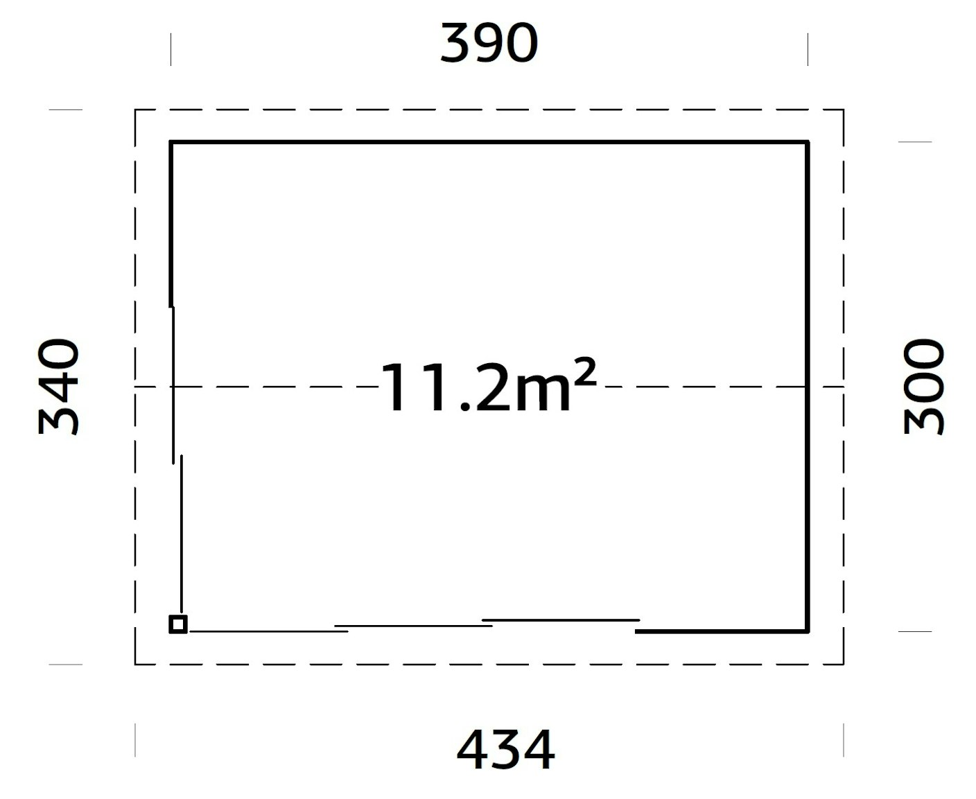 | Wandaußenmaße (BxT) | 390 x 300 cm |
