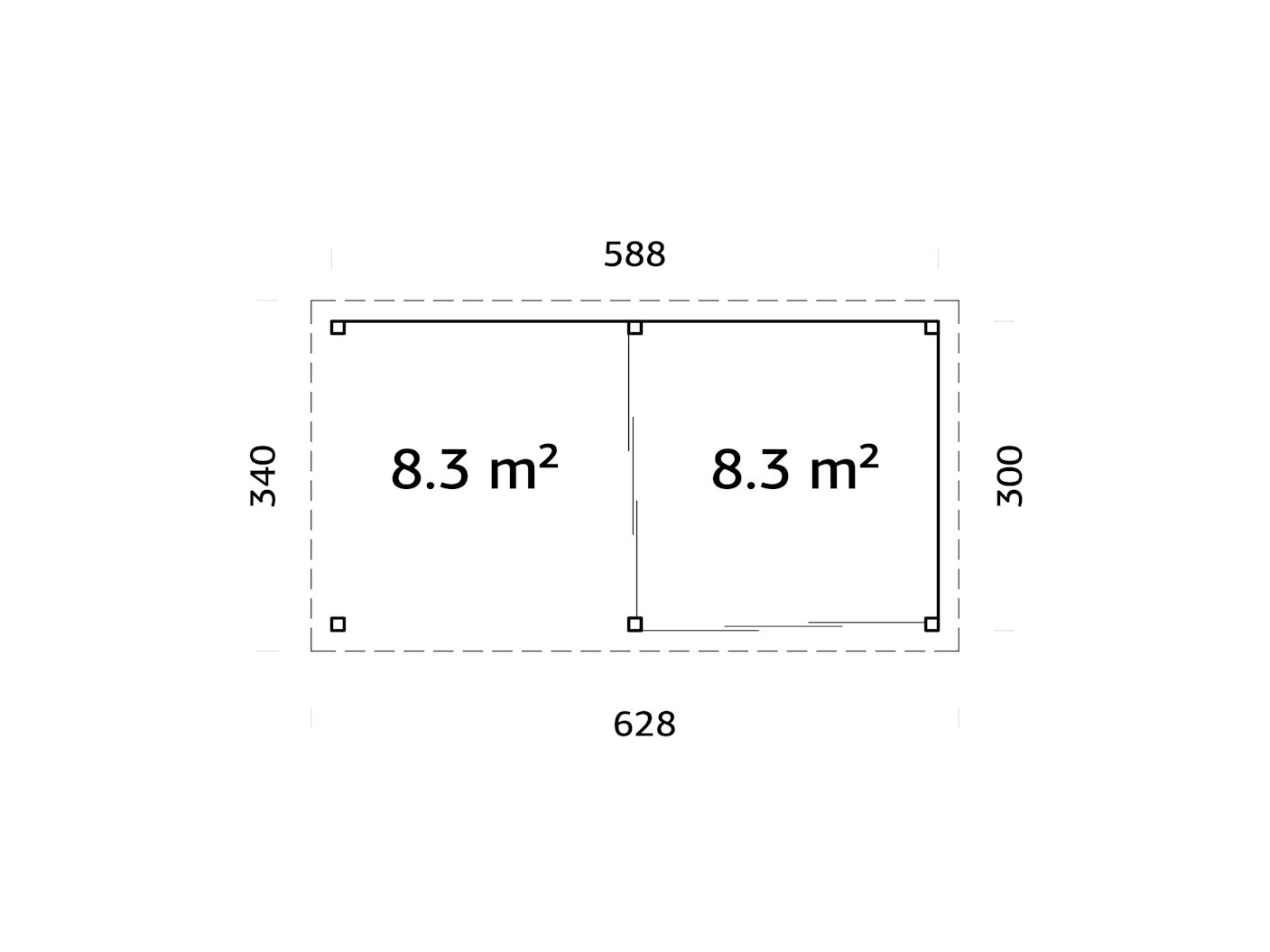 - Zwei geschlossene Holz-Wandseiten (3x Wandelemente)