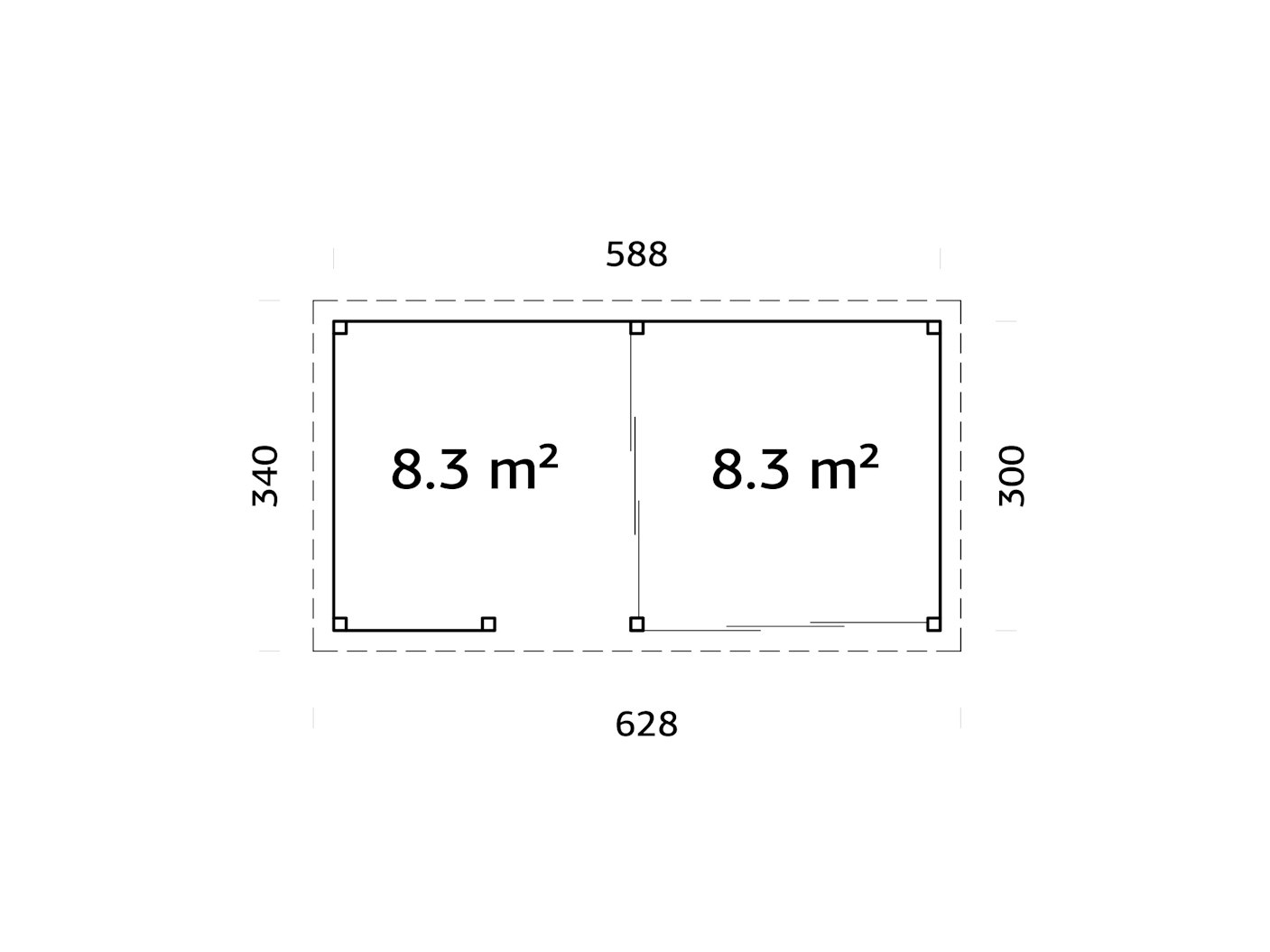 | Außenmaße (BxT) | 628 x 340 cm |