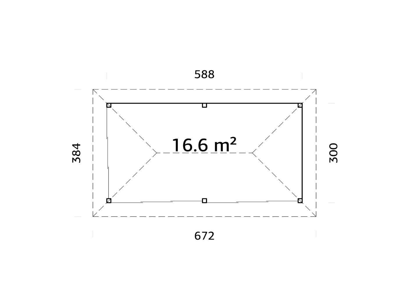 Maße inkl. Dachstand (BxT): 672 x 384 cm / Firsthöhe: 319 cm