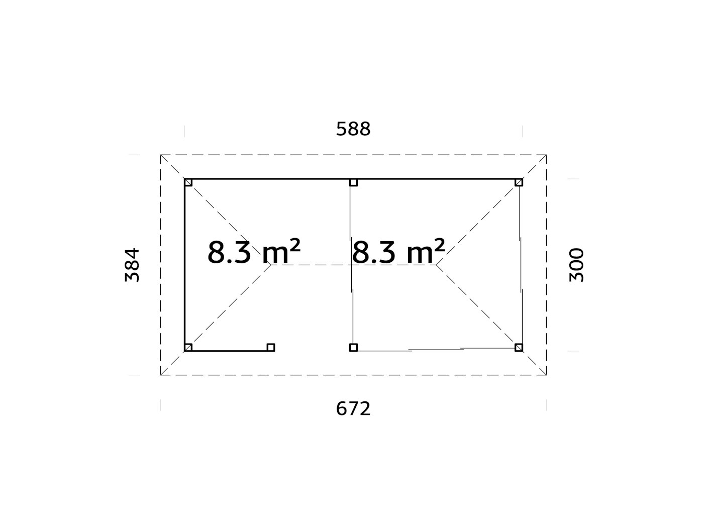 Wandaußenmaß: 588 x 300 cm / Firsthöhe: 319 cm