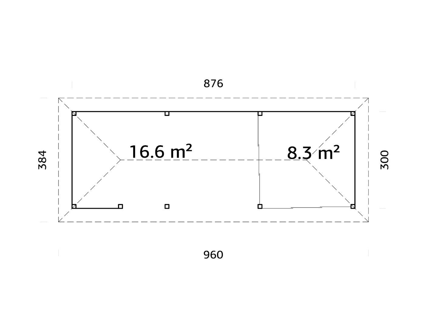Wandaußenmaße (BxT): 876 x 300 cm / Firsthöhe: 319 cm