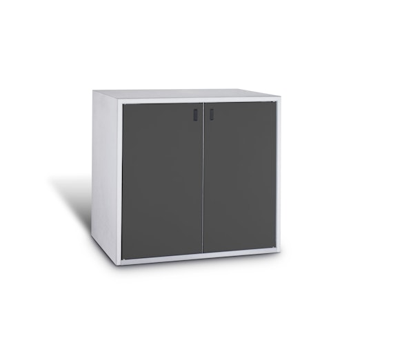 - Fronten aus Stahl, verzinkt und pulverbeschichtet mit matter Feinstruktur, wahlweise in den RAL Farbtönen Cognacbraun, Graphitgrau oder Seidengrau