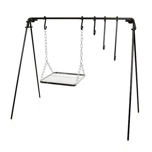 Dank ihrer Ösen-Konstruktion steht die Feuerbrücke stabil auf vier Beinen und ist schnell einsatzbereit. Mit der 115 cm langen Querstange lässt sich deine Camping-Küche über einer oder mehreren Feuerstellen aufstellen. Mit den drei Haken unterschiedlicher Länge kannst du dein Kochgeschirr in variabler Höhe über dem Feuer platzieren und dadurch die Gartemperatur deiner Speisen und Getränke auf Wunsch in drei Stufen regulieren. Der Grillrost hat eine flexibel einstellbare Kettenaufhängung in der Länge und eine umlaufende Umrandung, die deine gegrillten Lebensmittel sowie Pfannen und Co. sicher hält. Mit dieser professionellen Outdoor-Küche sind selbst mehr-gängige Lagerfeuer-Menüs für alle deine Camping-Freunde kein Problem mehr.