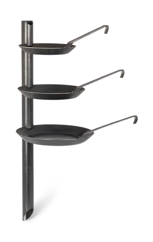 drei Einkerbungen für Zubereitung von Pfannengerichten in Wunschhöhe über dem Feuer