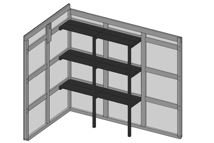 Mit dem Skan Holz Einbauregal für alle CrossCube Gartenhäuser schaffen Sie mehr Stauraum in Ihrem Gartenhaus. Das Regal wird an die Rahmenkonstruktion des CrossCube geschraubt und wird in anthrazit geliefert (identische Farbe wie der Rahmen). Das Regal passt als Einbau in alle Größen des CrossCube.