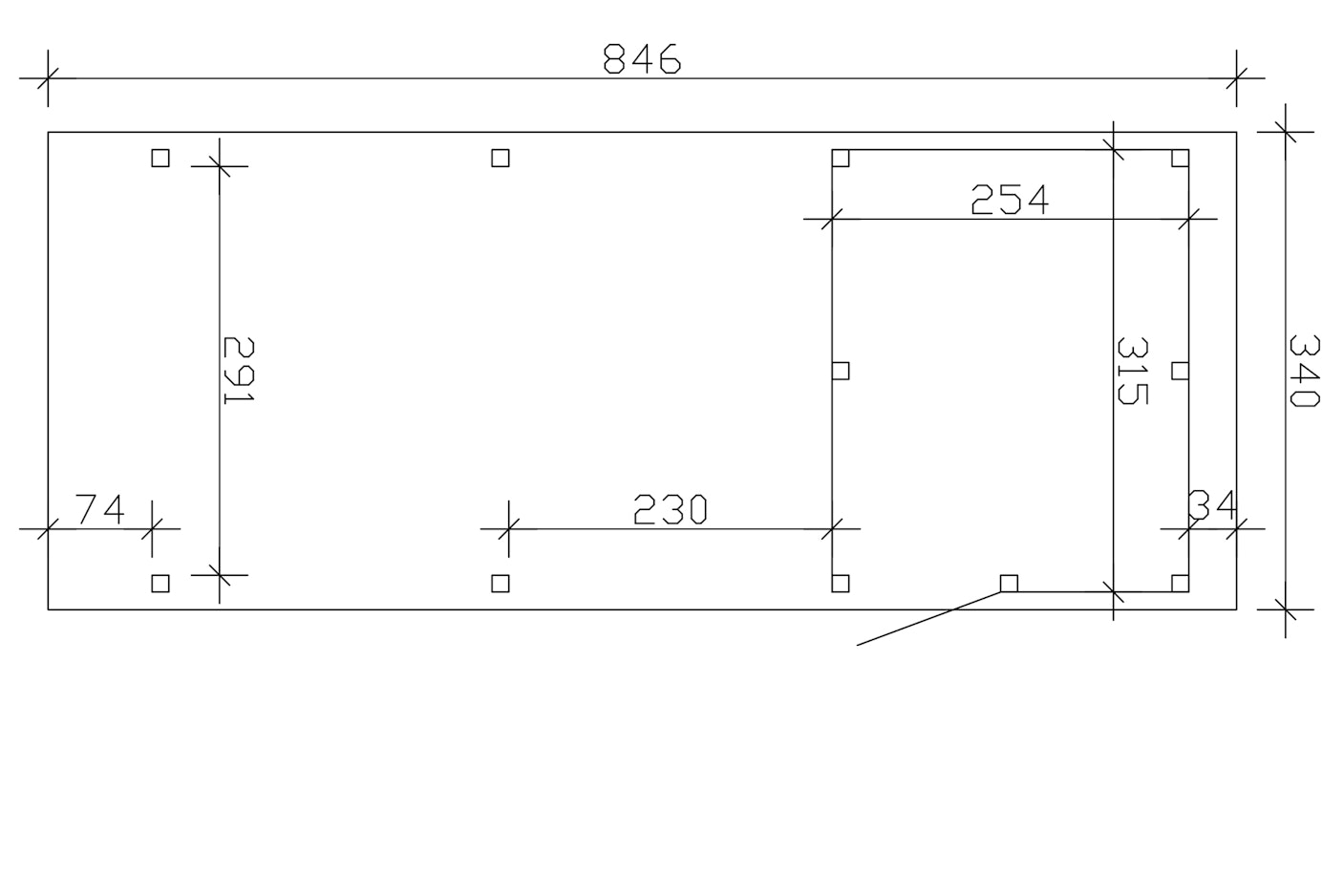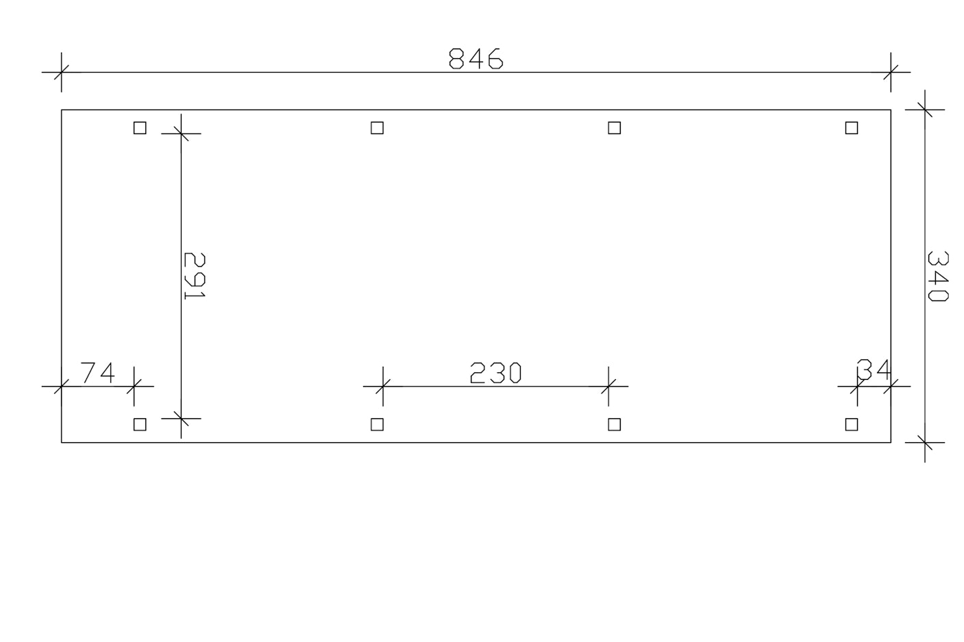 340 cm x 846 cm (Größe 2 inkl. Abstellraum) - Pfosten: 12 cm x 12 cm