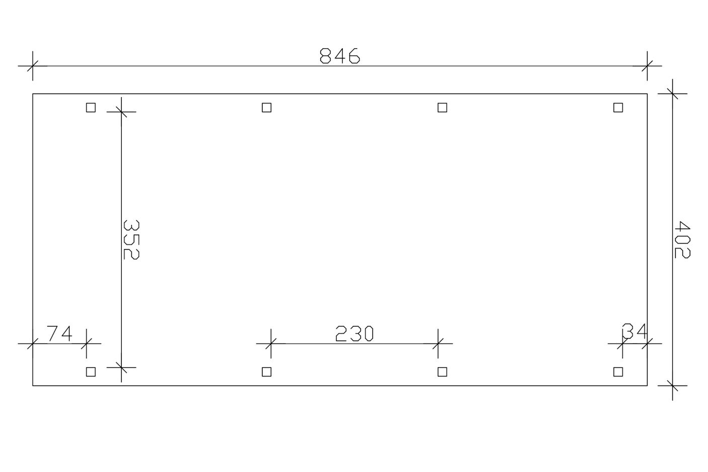 402 cm x 846 cm (Größe 2 inkl. Abstellraum) - Pfosten: 12 cm x 12 cm