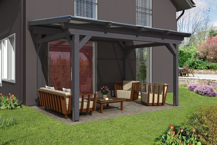 - Robuste Terrassenüberdachung aus hochwertigem Leimholz ohne Mittelpfosten
