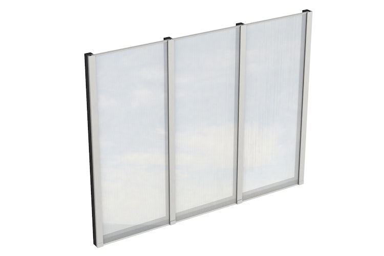 Der Lieferumfang besteht aus 3 Polycarbonat Platten ( 188 x 94,7 cm) und dem dazu gehörenden Holzrahmen.
