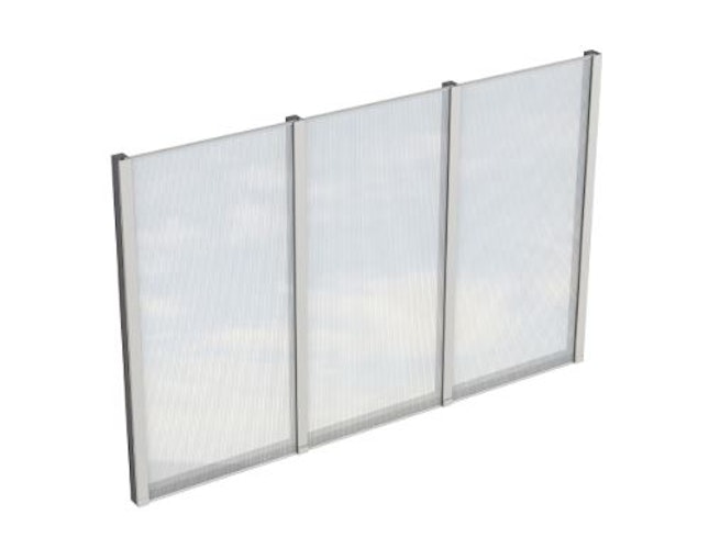 Der Lieferumfang besteht aus 3 Polycarbonat Platten ( 188 x 94,7 cm) und dem dazu gehörenden Holzrahmen.