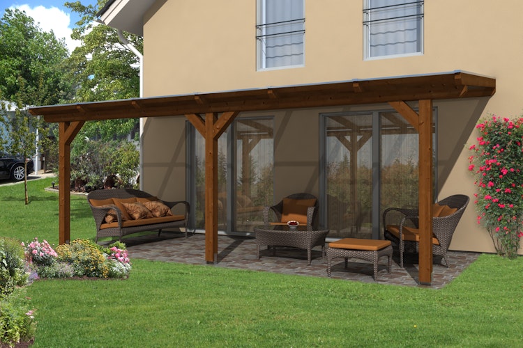 • Robuste Terrassenüberdachung aus hochwertigem Leimholz