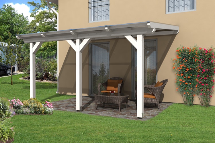 Robuste und langlebige Skan Holz Terrassenüberdachung Andria aus hochwertigem Leimholz, ideal geeignet für farbige Anstriche.