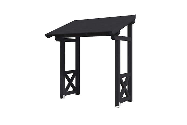 Das Skan Holz Pultdach Paderborn besteht aus unbehandeltem Nadelholz mit massivem Querschnitt und soliden Zapfenlochverbindungen. Das Vordach bietet Schutz vor Wind, Regen und Schnee.
