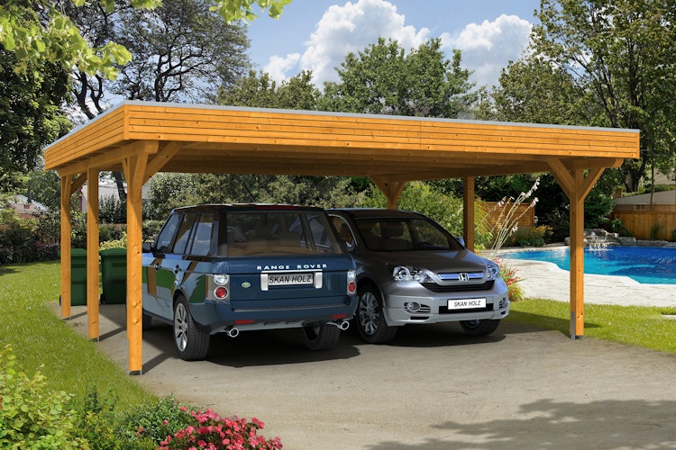 Skanholz Flachdach Doppelcarport Spessart Holzcarport