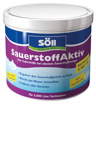 Gerade im Sommer kann es in Teichen zu einem bedenklich niedrigen Sauerstoffgehalt kommen. SauerstoffAktiv schafft hier sofort und nachhaltig Abhilfe für alle Teichbewohner. Ein Umkippen des Teiches kann so verhindert werden. SauerstoffAktiv reguliert den Sauerstoffgehalt im Wasser, fördert die Gesunderhaltung des Fischbestandes und unterstützt den schnellen Abbau von schadhaften Abfallprodukten, ohne dass giftige Faulgase entstehen. SauerstoffAktiv versorgt Bakterien mit lebenswichtigem Sauerstoff und begünstigt somit ihre Aktivität.