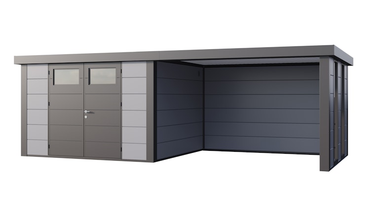 Telluria Metallgerätehaus Classico 3330 mit Lounge Anbau large (ca. 344 cm Breite) inkl. 2 Fenstern