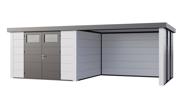 Telluria Metallgerätehaus Classico 3330 mit Lounge Anbau large (ca. 344 cm Breite) inkl. 2 Fenstern