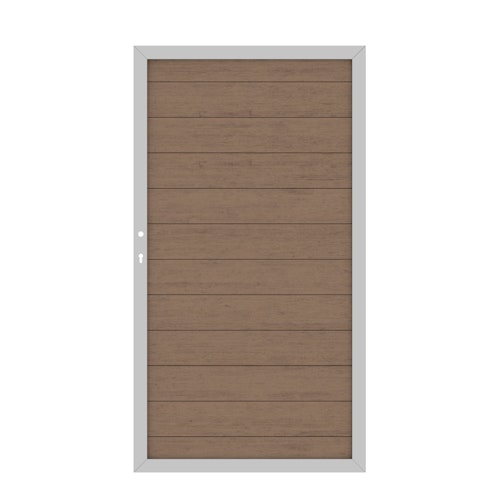Das TraumGarten System WPC Classic Einzeltor - bestehend aus 12 WPC-Profilen in umlaufendem Metall-Rahmen. Inklusive Beschlagsatz und Einsteckschloss.