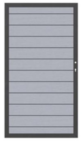 Das TraumGarten System WPC Classic Einzeltor - bestehend aus 12 WPC-Profilen in umlaufendem Metall-Rahmen. Inklusive Beschlagsatz und Einsteckschloss.