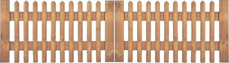 Das T&J Senkrechtzaun Doppeltor ist aus Kiefer/Fichte druckimprägniert braun gefertigt und überzeugt durch seine zeitlose Formgebung.