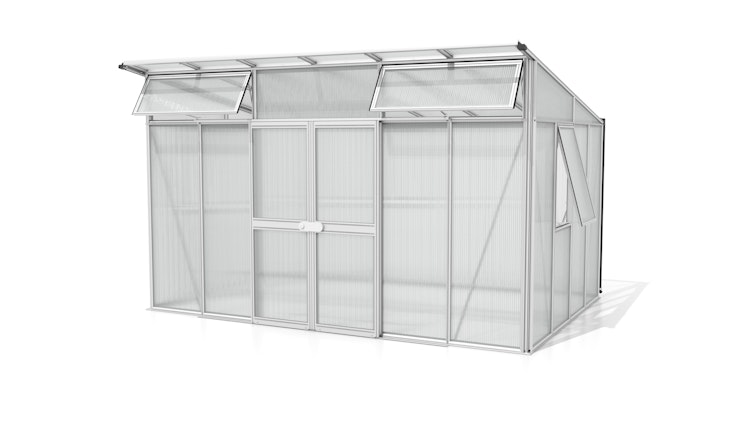- Premium-Modell mit Pultdach und soliden, verstärkten Doppelrahmenprofilen für mehr Windstabilität