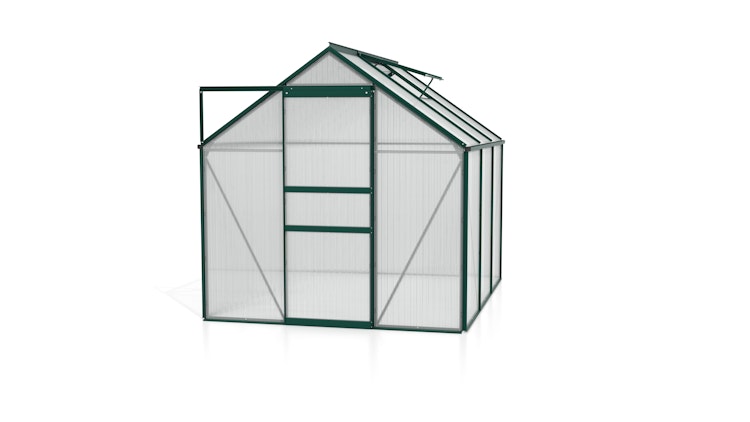 Das Vitavia Gewächshaus Calypso ist ein solides Einsteigergewächshaus, das mit serienmäßigem Dachfenster und kugelgelagerter Schiebetür aufwarten kann.