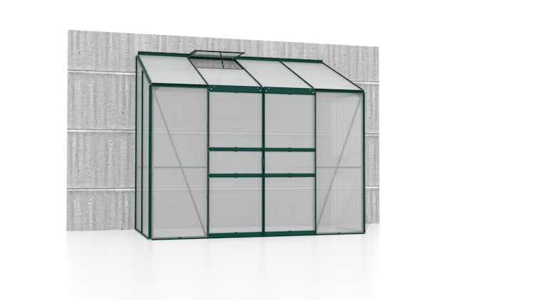 Das Vitavia Gewächshaus Styx/Ida 3300 ist das richtige Anlehngewächshaus bei wenig Platz. Die Verglasung besteht aus hochwertigen 4 mm Hohlkammerplatten oder 3 mm Einscheibensicherheitsglas.