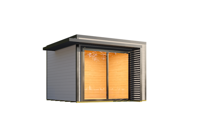 Für alle, die kein Home Office im Haus einrichten können, ist das Weka Design Gartenhaus Pure Garden Amberley eine ausgezeichnete Alternative. Das Modell mit einer Größe von 300 x 300 cm und einer Wandstärke von 28 mm bietet reichlich Platz, und die bodentiefen Doppelschiebetüren lassen viel Licht herein. Die „Amberley“ Gartenhäuser der „Pure Garden“ Serie zeichnen sich durch ihre moderne, kubische Form aus natürlichem Holz und Flachdach aus. Auffällige zweifarbige Akzente an Ecken und Dach sowie ein schwebendes Lamellenvordach sorgen für stilvolles Design und Schatten. Das Gartenhaus ist Teil der vielfältigen Weka Pure Garden Amberley Serie.