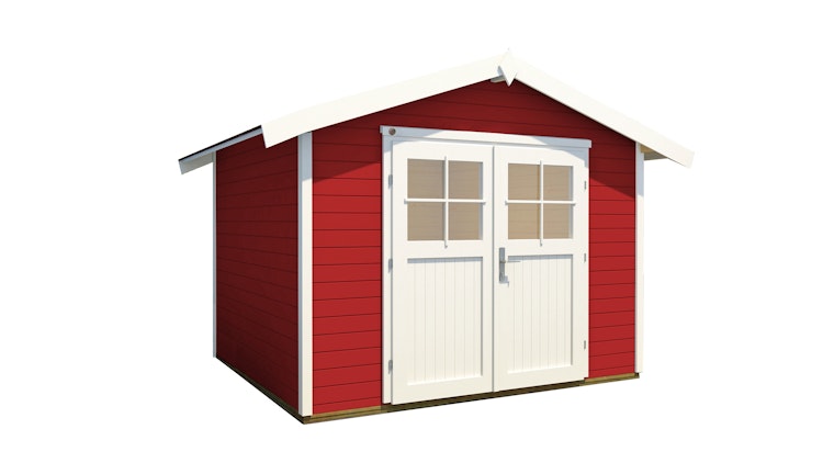 240 x 205 cm (Gr. 1), 240 x 235 cm (Gr. 2), 300 x 205 cm (Gr. 3), 300 x 235 cm (Gr. 4), 300 x 295 cm (Gr. 5) - 16 mm Massivholz-Satteldach