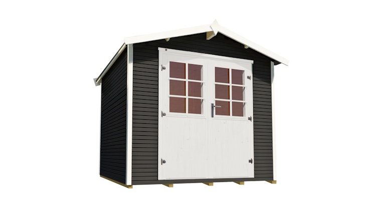 Die Innenwände, der Fußboden und das Dach werden bei unseren Gartenhäusern naturbelassen geliefert, damit der natürliche Holzcharakter im Innenraum erhalten bleibt. Zum Schutz vor Witterung sind alle Fenster und Türen bei unseren farbigen Häusern bereits beidseitig weiß lasiert.