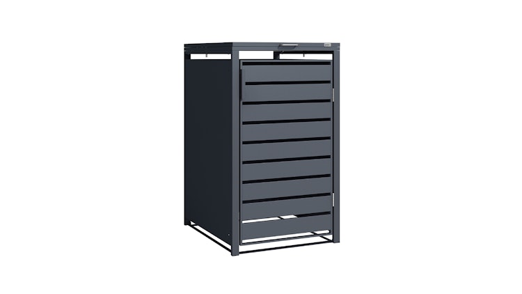 Die Weka Metall-Mülltonnenbox Gary verbindet erstklassige Funktionalität und modernes Design. Die Mülltonnenbox-Serie Gary bietet je nach Auswahl Platz für 1 bis 4 Mülltonnen á 240 Liter. Die langlebige, pulverbeschichtete Oberfläche garantiert Witterungsbeständigkeit und Pflegeleichtigkeit, während die integrierten Gasdruckdämpfer ein komfortables Öffnen und sanftes Schließen ermöglichen – für ein aufgeräumtes und gepflegtes Umfeld rund ums Haus.