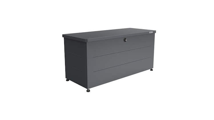 Die Weka Metall-Terrassenbox Gary bietet eine kompakte und sichere Lösung zur Aufbewahrung von Kissen, Gartenutensilien oder Geräten. Der abschließbare Deckel mit Gasdruckdämpfern sowie die witterungsbeständige, pulverbeschichtete Oberfläche in Anthrazit vereinen Komfort, Schutz und modernes Design.