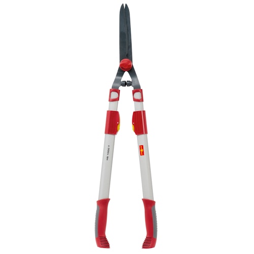Der Heckenschnitt ist aufgrund der Arbeitsbereiche in Bodennähe oder über Kopf oft wenig rückenfreundlich und körperlich anstrengend. Abhilfe schafft die praktische Teleskop-Heckenschere HS 1000 T. Die besonders leichten, äußerst stabilen eloxierten Aluminiumholme sind in der Länge verstellbar, rasten sicher ein und erleichtern die Arbeit so maßgeblich. Bücken und Strecken gehören beim Heckenschnitt damit der Vergangenheit an! Die Zweikomponentengriffe sind ergonomisch geformt und garantieren stets einen festen Grip. Die leichtgängige Mechanik sorgt für kraftvolle Schnitte ohne großen Kraftaufwand. Dabei schonen stoßdämpfende Anschlagpuffer die Gelenke. Ein integrierter Astabschneider garantiert das problemlose Schneiden auch von dickeren Ästen, während die präzise geschliffenen und mehrfach gehärteten Klingen äußerst verschleißarm arbeiten. Der Wellenschliff verhindert dabei, dass das Schnittgut aus der Klinge rutscht. So lassen sich viele Jahre lang perfekte Schnittergebnisse erzielen. Made in Germany | 10 Jahre Garantie