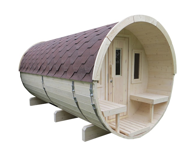 Mit dieser Wolff Finnhaus Fasssauna 400 (2-Raum) sorgen Sie für einen echten Hingucker in Ihrem Garten. Auf Wunsch erfolgt die Lieferung als komplett montiertes Produkt, das nur noch vom LKW abgeladen werden muss. Lieferung inkl. Dachschindeln in Wunschfarbe.